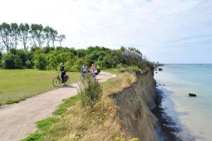 Ein Highlight ist heute das Wasserschloss in Mellenthin. Das Wort Mellenthin kommt aus dem slawischen und bedeutet „Mittelpunkt“. Genau dort, im Mittelpunkt der Insel, befindet sich die ehrwürdige Schlossanlage. Wir passieren das Schloss Stolpe und die Alleenstraße nach Bossin, bevor wir in das kleine Fischerdorf Kamimnke kommen. Entlang der Grenze zu Polen am Torfkanal überqueren wir diesen und radeln weiter zum Wolgastsee und nach Bansin.