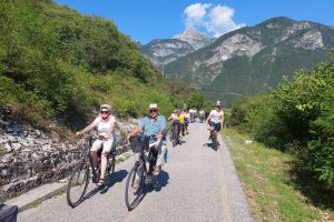 Noch in Villach wird vom Drau- auf den Gail-Radweg gewechselt, dem wir bis Arnoldstein folgen. Hinter dem Ort geht es ansteigend zur österreichisch-italienischen Grenze. Ab Tarvis fahren wir bergab durch das Kanaltal und bewundern vom Sattel aus die Schönheiten der friulanischen Alpenregion mit einer intakten, unberührten Natur und ausgedehnten Wäldern. Der Weg nach Udine ist zu lang für eine Tagesetappe. Unser Bus bringt uns deshalb weiter bis in die Stadt. Am Abend genießen wir das lebendige Treiben der Stadt auf der „Piazza“ oder während eines Bummels durch die Gassen.
